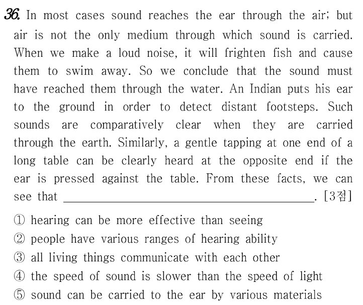 대부분의 경우 소리는 공기를 통해 귀에 도달하지만 소리가 전달되는 유일한 매개체는 공기가 아닙니다.우리가 큰 소리를 낼 때, 그것은 물고기를 놀라게 하고 그들이 헤엄쳐 떠나게 할 것입니다. 그래서 우리는 그 소리가 물을 통해 그들에게 도달했을 것이라고 결론짓습니다. 한 인도인이 먼 발소리를 감지하기 위해 귀를 땅에 대고 있습니다. 이러한 소리는 지구를 통해 전달될 때 비교적 분명합니다. 마찬가지로, 긴 테이블의 한쪽 끝을 부드럽게 두드리는 소리는 귀를 테이블에 대고 누르면 반대쪽 끝에서 분명히 들을 수 있습니다. 이러한 사실들을 통해 우리는 그것을 알 수 있습니다.