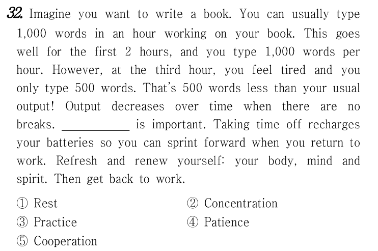 당신이 책을 쓰고 싶다고 상상해 보세요. 여러분은 보통 책을 쓰면서 한 시간 안에 1,000개의 단어를 입력할 수 있습니다. 이것은 처음 2시간 동안 잘 진행되며, 시간당 1,000개의 단어를 입력합니다. 하지만, 세 번째 시간에는 피곤함을 느끼고 500개의 단어만 입력합니다. 그것은 당신의 평소 생산량보다 500단어 적은 양입니다! 중단이 없을 때는 시간이 지남에 따라 출력이 감소합니다. 중요합니다. 휴식을 취하면 배터리를 재충전하여 업무에 복귀할 때 앞으로 전력 질주할 수 있습니다. 당신의 몸, 마음, 정신을 새롭게 하고 새롭게 하라. 그럼 다시 일하세요.